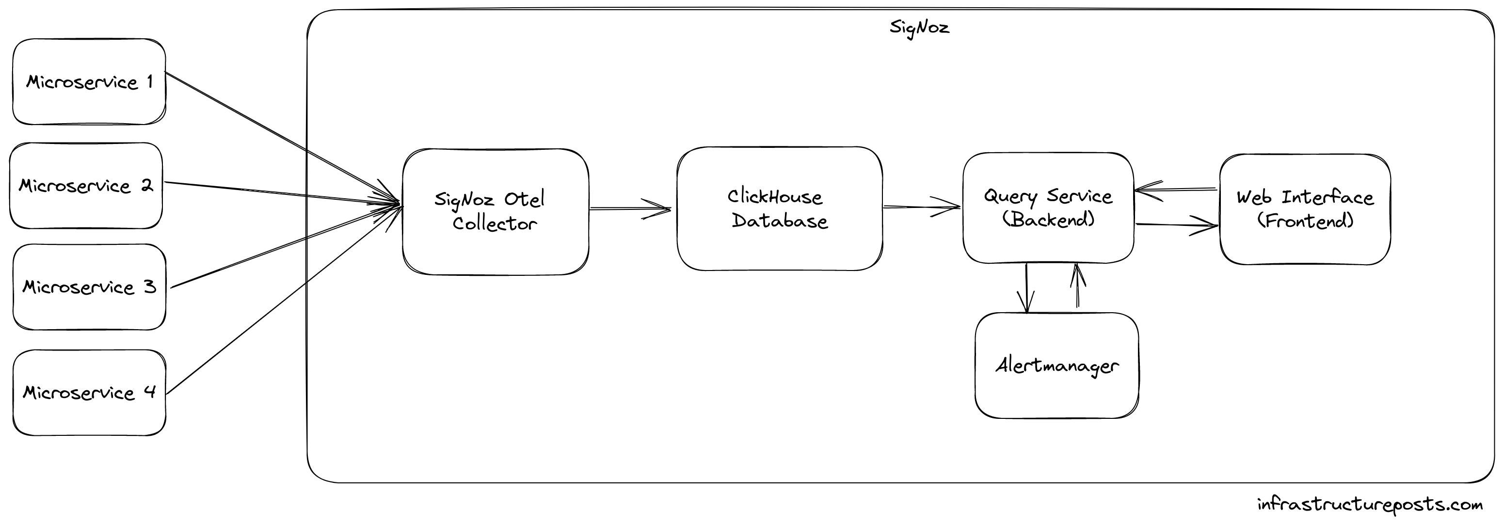SigNoz relies on OpenTelemetry to gain insights into the performance of your applications. Once you have instrumented your application with OpenTelemetry, you send this data to the SigNoz Otel Collector, which will save it in a ClickHouse database.